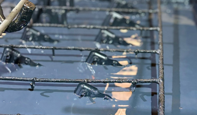 Línea de pintura electrostática P-COAT, curada en hornos con temperatura de 230 grados con piezas hasta 1100 x 650 x 600 mm. En un espesor de capa de 30 a 90 micras con una resistencia a la corrosión blanca de 480 horas y una resistencia a la corrosión roja de 1,000 horas en cámara salina.